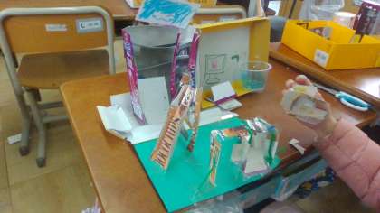 友だちハウスが完成してきました。細かいところまでこだわって、「小さな友だち」が喜ぶ家を作りました。エレベーターやブランコ、滑り台があるとても豪華なお家が…。「こんなん作ったよ!」と嬉しそうに教えてくれる子も。また来週には持ち帰ってもらいますので、子どもたちの作った作品をお楽しみください!