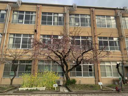 学校園を見上げると桜が咲いていました。
