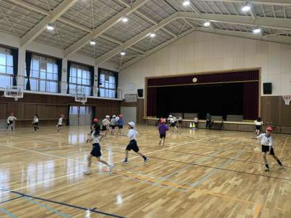 2年生が体育館で走っています。