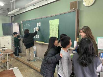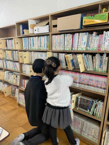 学校図書館の本を正しく並び替えるのを手伝ってくれる子