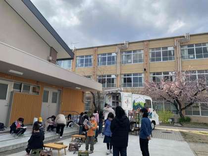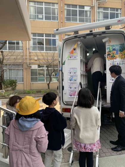 日本新薬の移動図書館がやってきました。