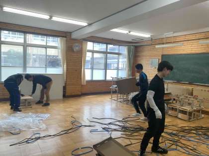 空き教室に新しい机といすを運んで