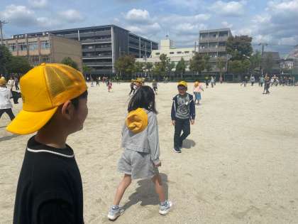 春のさわやかな陽気の中、全力でかける4年生。元気いっぱいです。