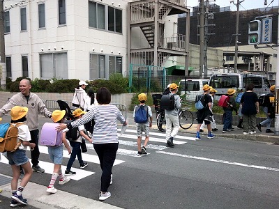 新しく1年生を加えて顔を合わせ、みんなで集団下校をしました。
