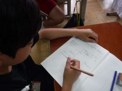 0のかけ算の答えの見つけ方を考えました。自分の考えをノートに書いたり、やり方をみんなの前で説明したりするなど新しい学習を頑張っています。