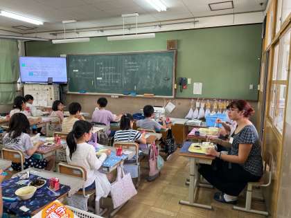 普段関わることのない、外国の方々との貴重な時間でした。一緒に給食を取りに行ったり、返却したりしました。休み時間にお話をしにいき、「サインをもらった!!」と喜ぶ子もいました。
