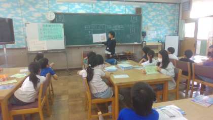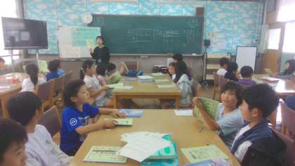 図書館の使い方を橋本先生に改めて教えてもらいました。また、司書の先生に、「図書館ライオン」という物語を読んでもらいました。みんな集中して聞いています。読書ノートを使い、たくさんの本に親しんでほしいと思います。