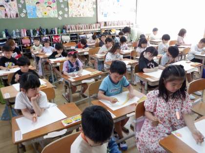 お絵描きの大好きな1年生。思いついたものを楽しく描きました!パスを置く場所やパス音使い方も少しずつ学習しています。