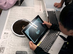 子どもたちは、じっくり見たり、優しくさわったりして、