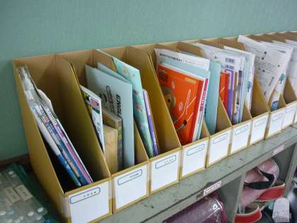 学校全体で、整理整頓を心がけるために、個人ボックスを、教室の後ろに置きました。