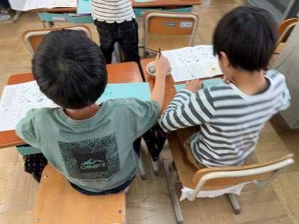 うまく書けるたび、友達と見せ合ったり先生に見せたり嬉しそうにしていました。