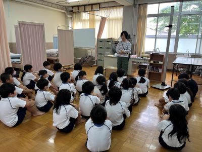 身体計測がありました。自分の体の成長を実感し、体について考える機会になったと思います。