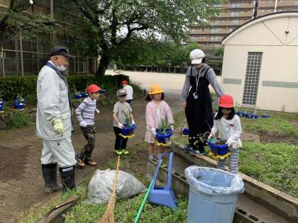学校も支援員の方が、2年生が植木鉢を置きに