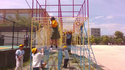 3年生になって総合遊具の3階まで自由に行けるようになりました。