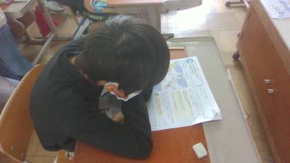 社会科初めてのテストです。集中しています。