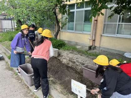 九月に学習する単元に向けて、ヘチマを植えました。これまでに育ててきた植物を思い出しながら、大きく成長させてほしいと思います。