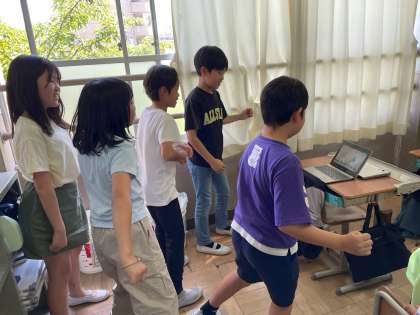 お昼休み。教室のすみで何やらダンスをしている子が。ダンス係が、みんなにダンスを教えるために準備をしているようです。楽しみです。