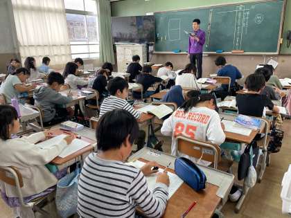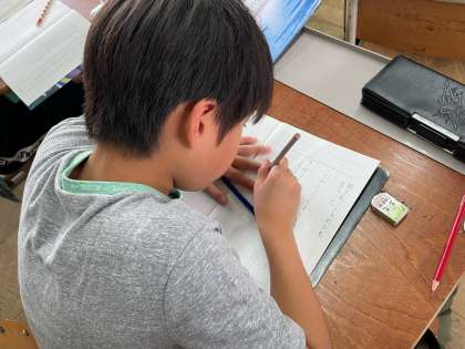 先生が話したことを、必要なことだけを聞き取り、メモを取る練習をしているようです。
