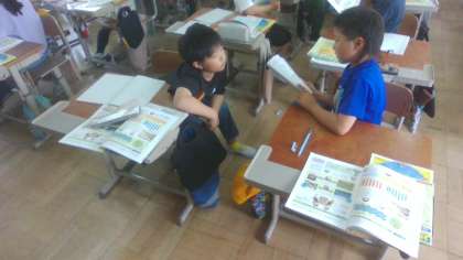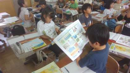 社会科では、琵琶湖の水がどのように水道水として届いているのか、資料から必要な情報を抜き出す作業を行いました。社会科では、資料を見て考察をする力が必要です。がんばっています。