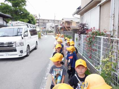 左右を見たり,手をあげて横断したりなど,先週の交通安全教室でまなんだことをしっかりと生かして歩いていました。歩道の幅が狭くても,路側帯から出ないように歩いていたのも感心でした!