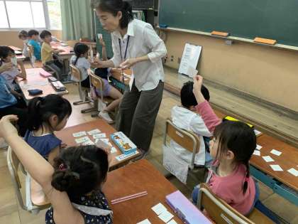 1年生が笑顔で学んでいる姿にうなずかれて