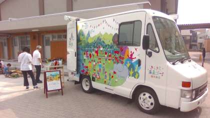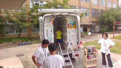 今年も日本新薬の移動図書館「キラキラ未来ゴー」が小学校に