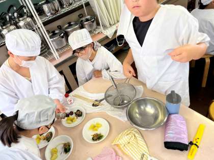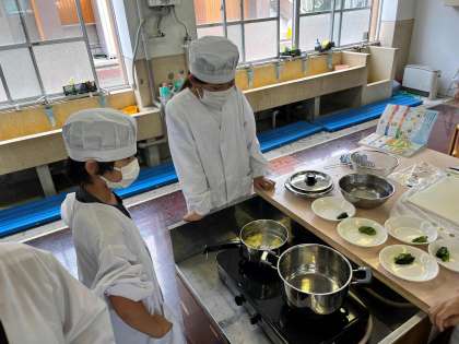 今日は1組が調理実習をしました。