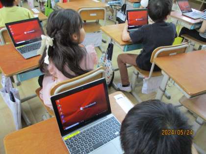 今日は、はじめてGIGA端末を使ってみました。まだ、ログインとシャットダウンで精いっぱいでしたが、みんな嬉しそうに操作していました。