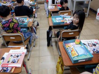 「あとかたづけ」の学習では,机の中がきれいになっているか,みんなでチェックをしました。