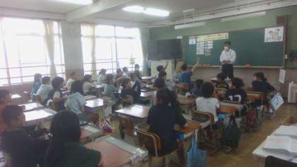 南署のスクールサポーターの方に来ていただき、非行防止教室を実施しました。日常生活に潜む犯罪や、一人一人の行動がどのような結果につながるのか、法律とどのように結びついているのかを学びました。「きょうりょく」と「じりつ」にもつながる、「友だちと正しい行動をしよう」「自分で正しい行動をとろうという」お話もいただき、日々の生活を見直すきっかけになったと思います。