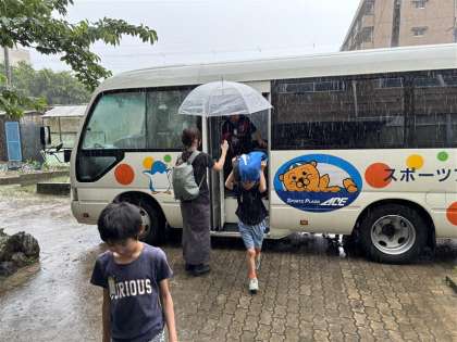 待ちに待った水泳学習の日。バスに乗るときから子どもたちの気持ちは高揚していました。ついてからは、エースの方々の指導の下一生懸命取り組んでいました。小学校の水泳学習では見ることのできないような姿を見ることができました。大雨の中の送迎でしたが、エースの方々のご協力もあり楽しい学習になりました。ありがとうございました!