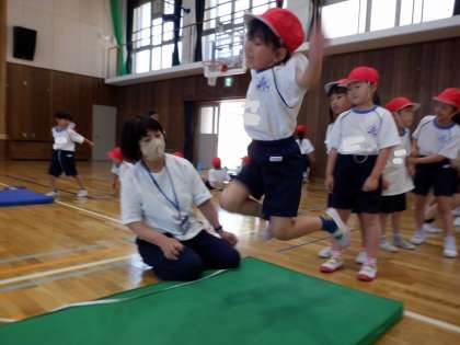 今日の体育は,体力テストの立ち幅跳びをしました。両足そろえてジャンプするのは少し難しかったけれど,腕もふって上手に飛ぶことができました。