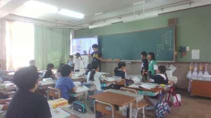 「公共」とは何かという話から始まった今日の道徳。教室での過ごし方、公園での過ごし方、バス停での過ごし方…すべて、「公共」の場です。周りに自分以外の人がたくさんいる場所での過ごし方とはどのようなことに気を付けなければならないのか、実際のバス停での場面をロールプレイングで行い、登場人物の気持ちを考えました。この学習を通して、公共の場での過ごし方について意識ができる人になってほしいと思います。