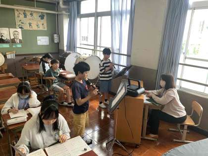 音楽室ではリコーダーのテストを