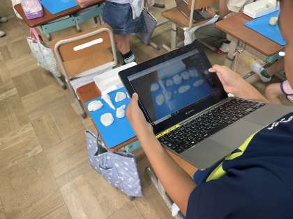 写真を撮った後、写真に作ったもののタイトルを書いて
