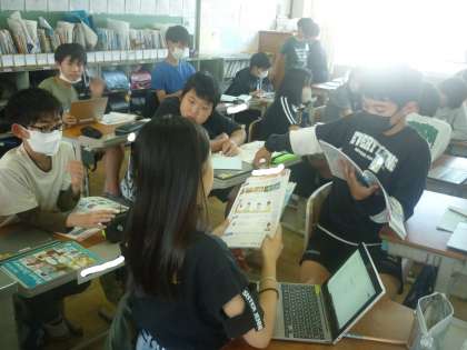 今日は、日本でできることを「In Japan,You can 〜」と、グループで交流しました。その後、グループの代表児童が全体の前で発表しました。