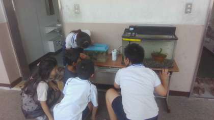 「植物の発芽と成長」と並行して「メダカの観察」が始まりました。今日は、水槽を見たり教科書を見たり図書館に行ったりと、思い思いの方法で疑問をたくさん見つけました。見つけた疑問に予想と仮説を加え、これから観察する中で解決していきます。