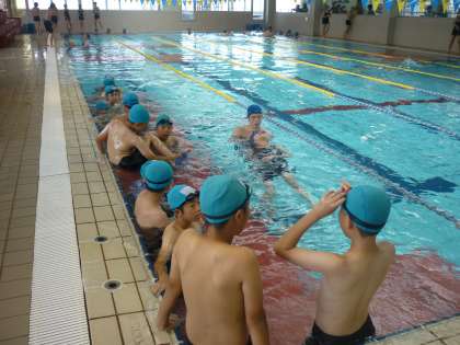 今日は、背泳ぎの練習を始めました。上を向いて泳ぐことに抵抗があった子も、コーチに支えてもらって、泳ぎ方を理解することができていました。ナイス挑戦!