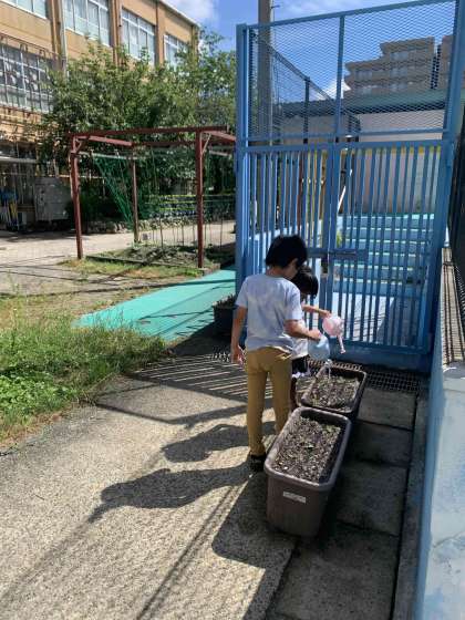 4組(育成学級)は学校園の畑やプランターに