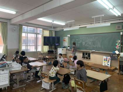 5年生は4年生の担任の先生に授業を教えて