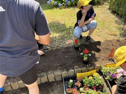 子どもたちの力でとてもすてきな花壇になりました。最後にお世話になった皆様にお礼の言葉を伝え、達成感とともに学校に帰りました。「youyouパーク見に行こう!」「今度は掃除がしたい!」そんな声が子どもたちから聞かれ、とても良い体験になったことがわかりました。地域のため、そして子どもたちのためにたくさんの協力をしてくださった、西大路駅周辺を美しくする会、企業の方々、地域の皆様、本当にありがとうございました。そして、引き続きよろしくお願いいたします。