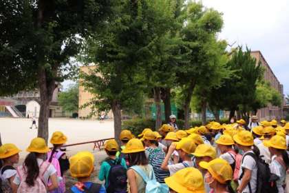京都タワーから見るポイントを確認した後、さっそく出発です!朝から楽しみでソワソワしていましたが…歩くときは2列で、電車に乗るときは静かに乗っていてとっても素晴らしかったです!