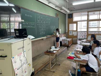 様々な人たちが関わってきれいになった「水」が、家庭に届いて、使い終わった水がどこにどのように行きつくのか、という学習問題で、みんなに考えてもらいました。社会見学で行った「水環境保全センター」で見てきたことを、絵に表してくれています。社会見学で学んだことをこれからの学習で生かしてほしいと思います。