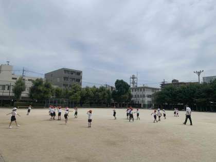 2年生は運動場で国語で習ったスイミーを