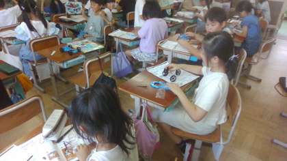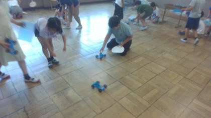 風とゴムのはたらきの学習に入りました。実験で使う車を作って、動きの確認をしました。