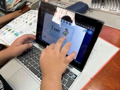 タブレットのカードを使いながら友だちと伝え合いました。