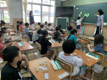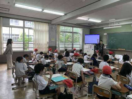 2年生の教室では、学生ボランティアも来て