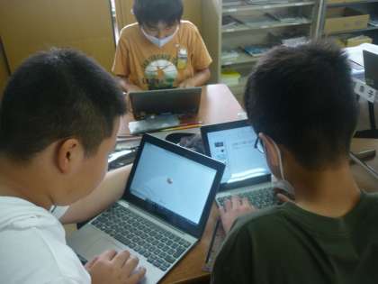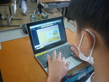 パワポで共同編集している子、ロイロノートで写真を使ってまとめている子、図書館で本を使って調べながらまとめている子など、自分で発表方法を選択し、考える姿が見られました。