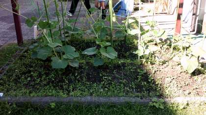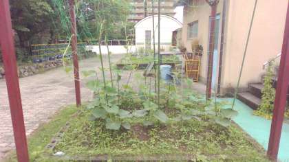 土日があけて見てみると・・・。ヒョウタンはさらに大きくのびて