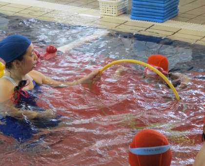 小学校に入学して初めての水遊びを楽しみました。もぐったり浮かんだり、ビート板を使って泳いだりしました。とても楽しかったようで、「次は、いつ行くの?」「楽しみだな!」と心待ちにしている声があり、嬉しかったです。